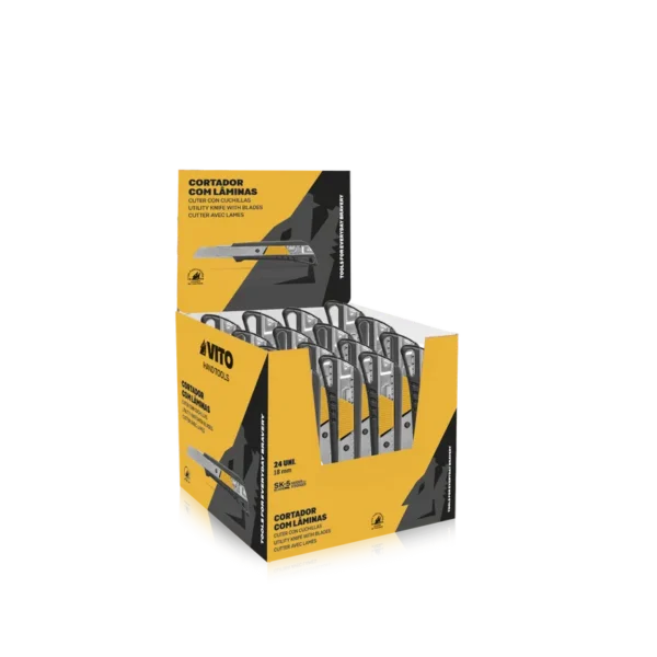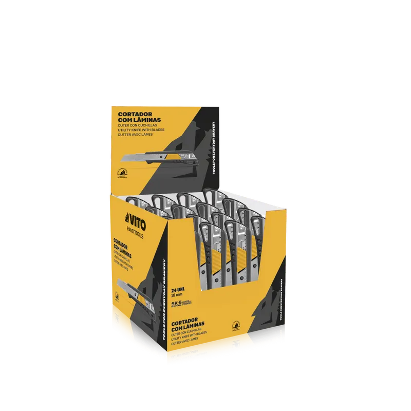 Display box of 24 SK5 Cutters with blades with TPR coated metal body.