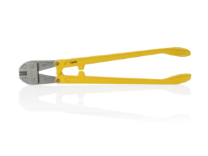 Bolt cutter with steel body, chrome vanadium forged steel blades and a 3-point pivot mechanism.